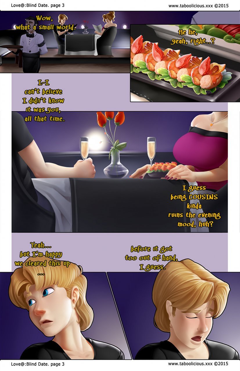 Incest sex comics free without registration about the guy who went on a blind date with a girl he met on the network. Сoming out on a date, he discovered that the girl was his cousin, whom he had not seen. Incest sex comics free without registration - [Taboolicious(White-Devil)] Blind Date [Complete].