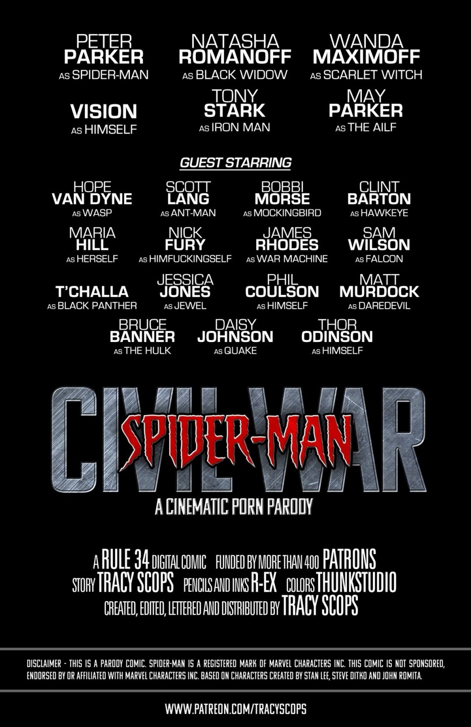 Spiderman - Civil war Group:tracy scops Artist:r-ex Parody: spider-man Tags: group, double penetration, big penis, dark skin, anal, big breasts, bukkake, stockings Spider-man porn comics free in which Peter Parker have sex with Black Widow and Scarlet Witch. Spider-man porn comics - [r-ex, tracy scops] Civil war. Thumb Full size Added byalinam 13 pages 420 514 09 Dec 2016 Add to Favorites +382252 11