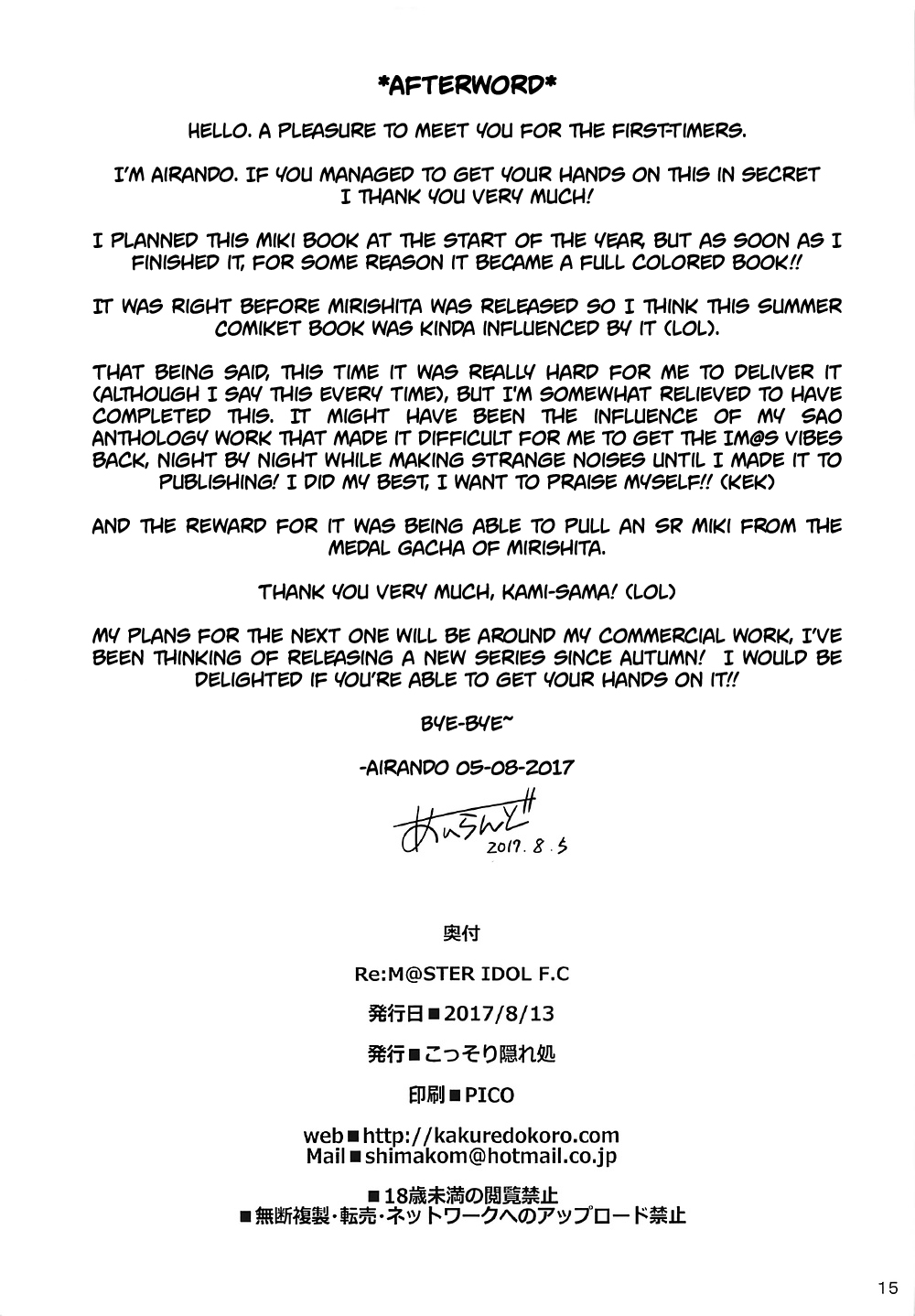 Re:M@STER IDOL F.C Artist:island Parody: the idolmaster Tags: nakadashi, big breasts, color (C92) [Kossorikakuredokoro (Island)] Re:M@STER IDOL F.C (THE iDOLM@STER) [English] [obsoletezero] Thumb Full size Added byalinam 18 pages 26 396 24 Nov 2019 Add to Favorites +2224 5
